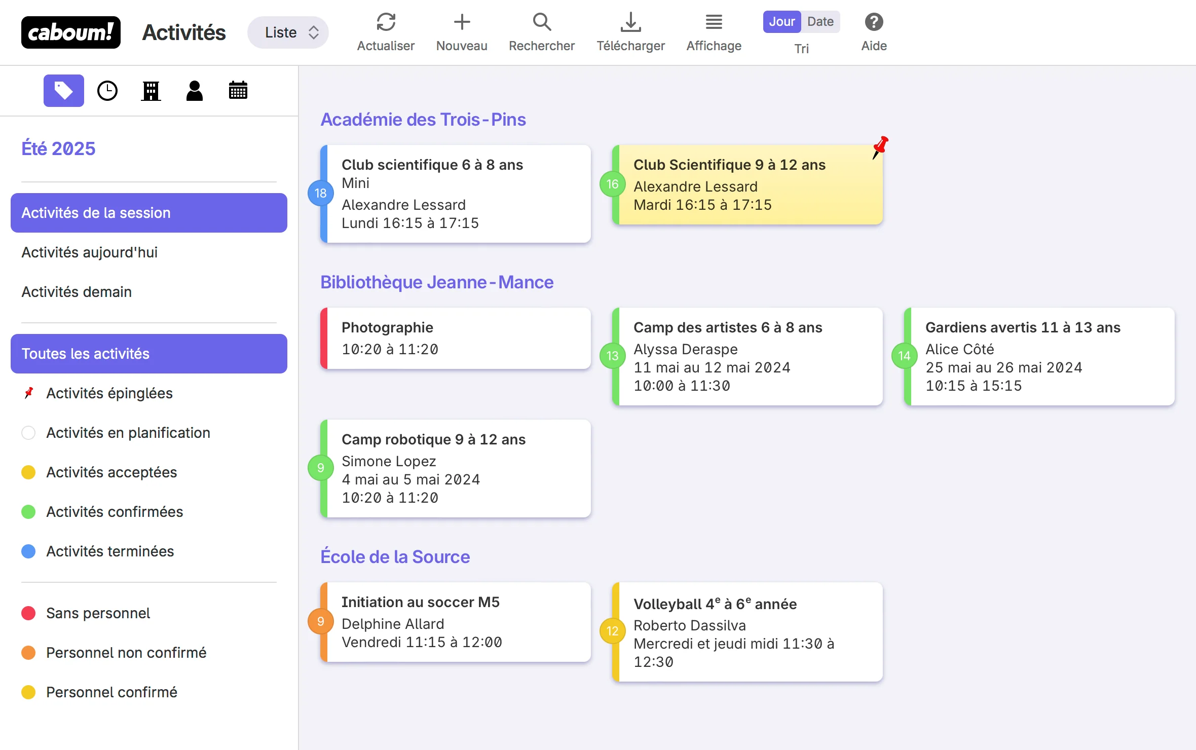 La plateforme de gestion Caboum permet à votre entreprise de gérer facilement vos planifications d'activités et vos inscriptions.